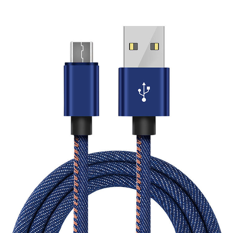 Джинсовый - Плетеный кабель USB - Micro-USB для зарядки |